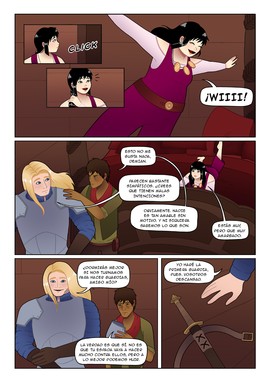 dice:Bueno, veremos si pega ojo, aunque por ahora excepto luchando contra el dragon Demian ha mostrado ser un aventurero en condiciones y se puede confiar en él para vigilar